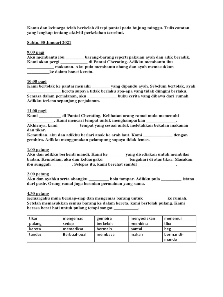 Kamu Dan Keluarga Telah Berkelah Di Tepi Pantai Pada Hujung Minggu Pdf